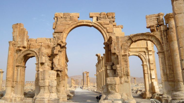 "יש קללה על העיר הזאת": לוחמי דאעש פוצצו את שער הניצחון בתדמור, סוריה