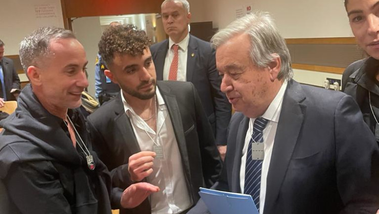 משנה כיוון? מזכ"ל האו"ם חיבק את נציגי משפחות החטופים וענד את דיסקית השבויים