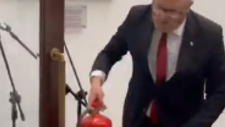 תקרית אנטישמית בפולין: חבר פרלמנט כיבה חנוכיה עם מטף | צפו