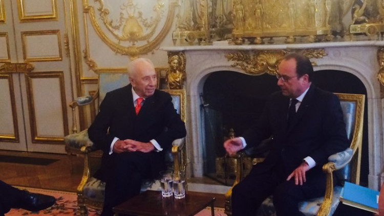 נשיא צרפת בפגישתו עם פרס: "צרפת נותרה איתנה נגד החמאס והטרור"