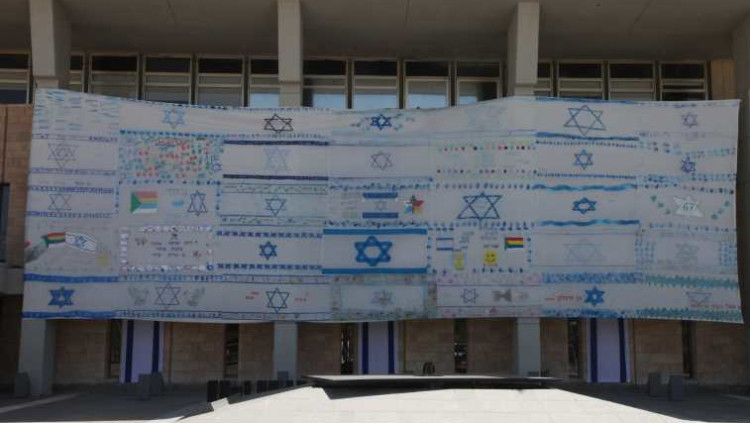 כל הכנסת דגלים דגלים: פסיפס יצירות של ילדי ישראל נתלה במשכן