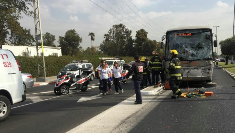 18 פצועים בתאונה בין משאית לאוטובוס בתל אביב