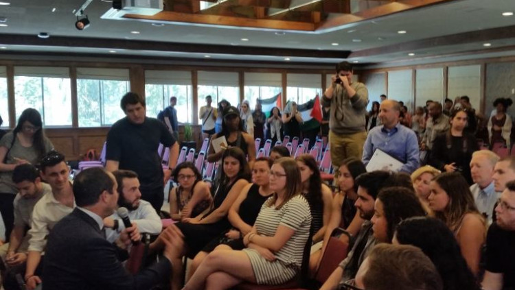 מפגינים פרו פלסטינים התפרצו להרצאה של ניר ברקת בארה"ב