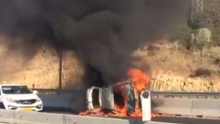 רכב התהפך בכביש 1 ועלה באש; הנהג נפצע באורח קל