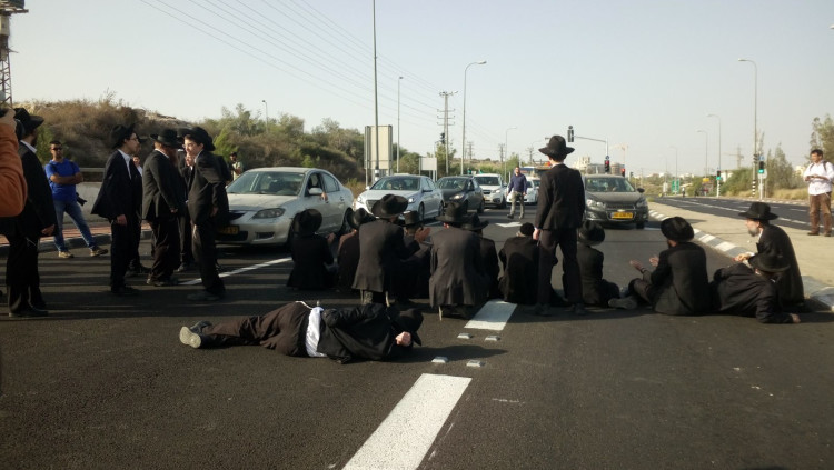 עשרות מפגינים חרדים חסמו את התנועה סמוך למודיעין