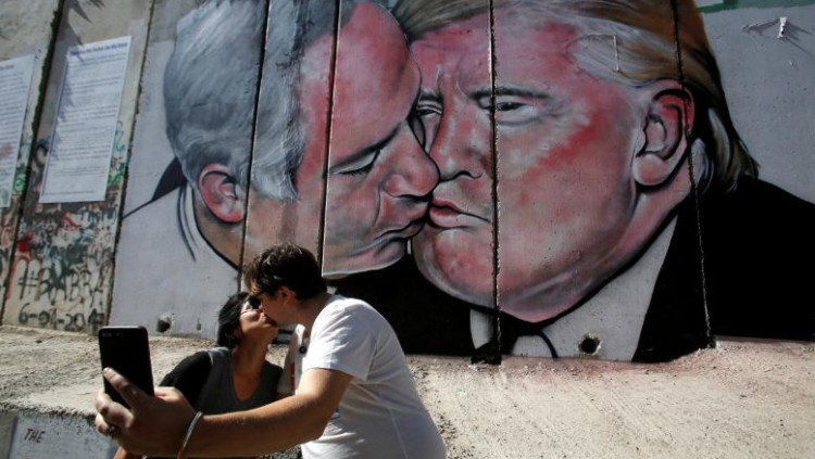 גרפיטי של טראמפ ונתניהו מתנשקים צויר על גדר ההפרדה