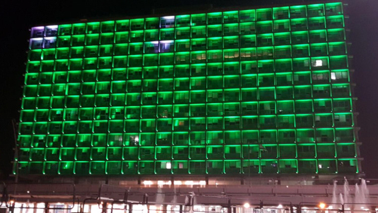 במחאה על יציאת ארה"ב מהסכם האקלים: בניין עיריית תל אביב הואר בירוק