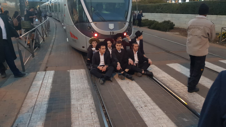 במחאה על מעצר עריק: חרדים חסמו כבישים ואת הרכבת הקלה בירושלים