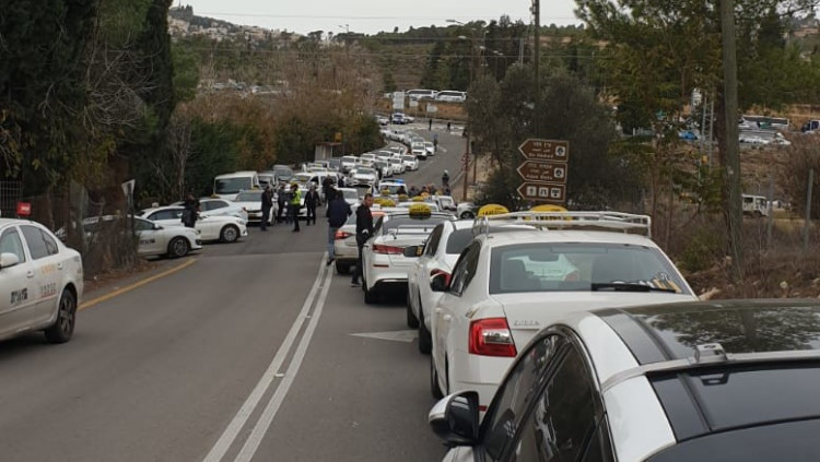 מחאת המוניות: מאות נהגים מחו בצומת עזריאלי ובנתב"ג
