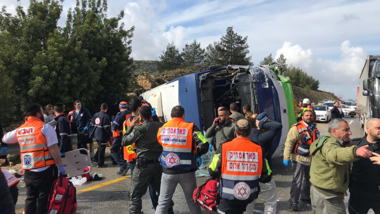 שתי הרוגות ו-41 פצועים בהתהפכות האוטובוס בכביש 443