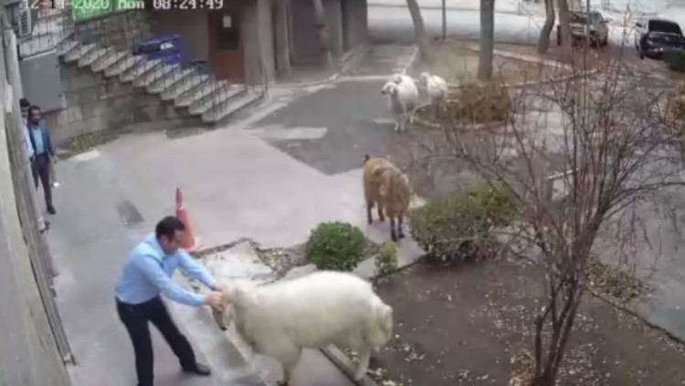 תיעוד הזוי: "כנופיית" כבשים פשטה על בניין עירייה