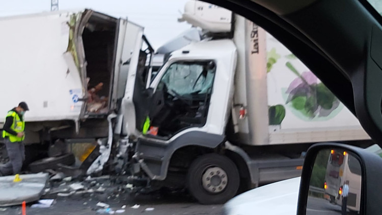 חמישה פצועים בתאונת שרשרת בין 3 משאיות ואוטובוס בכביש 2