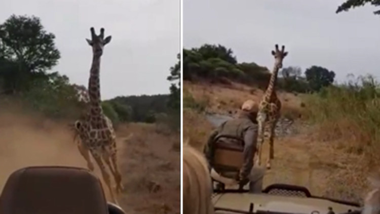 תיעוד מבהיל: ג'ירפה עצבנית רדפה אחרי חבורת תיירים