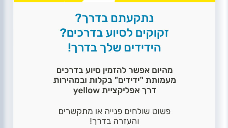 עמותת ידידים לסיוע בדרכים בשת״פ עם חברת yellow מציגות הזעקת עזרה בלחיצת כפתור