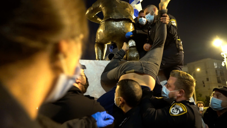 פסל בדמות מפגין שהוצב אתמול בכיכר פריז הוסר במהלך הלילה