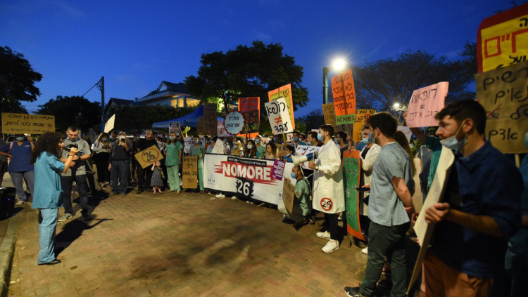 כ-150 מתמחים הפגינו באוהל המחאה מול ביתו של אדלשטיין