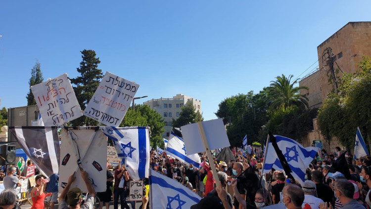 מאות בני אדם מפגינים מול מעון ראש הממשלה בירושלים