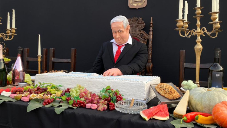"הסעודה האחרונה של נתניהו": מיצג המחאה בכיכר רבין
