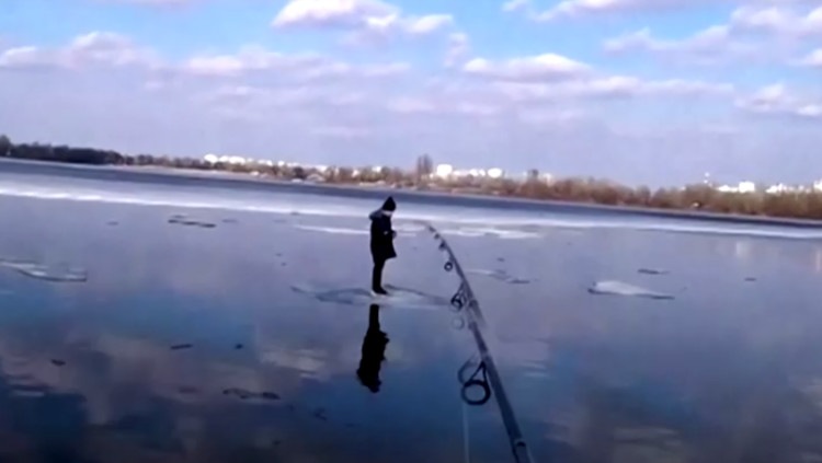 באמצעות חכת דיג: גבר "דג" ילד קטן מתוך אגם קפוא | צפו בחילוץ