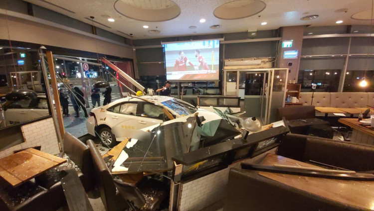 נמנע אסון: נהג מונית פגע בקיר מסעדה בתל אביב, ארבעה נפצעו קל