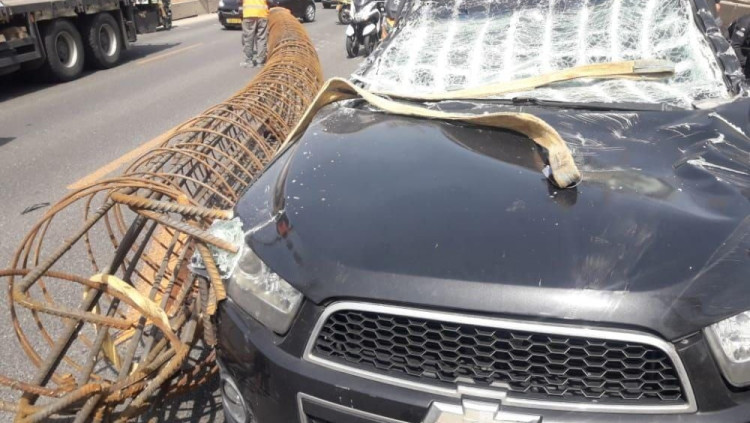 "קרה לי נס גדול": גליל מתכת במשקל 15 טון נפל על רכב נוסע באיילון
