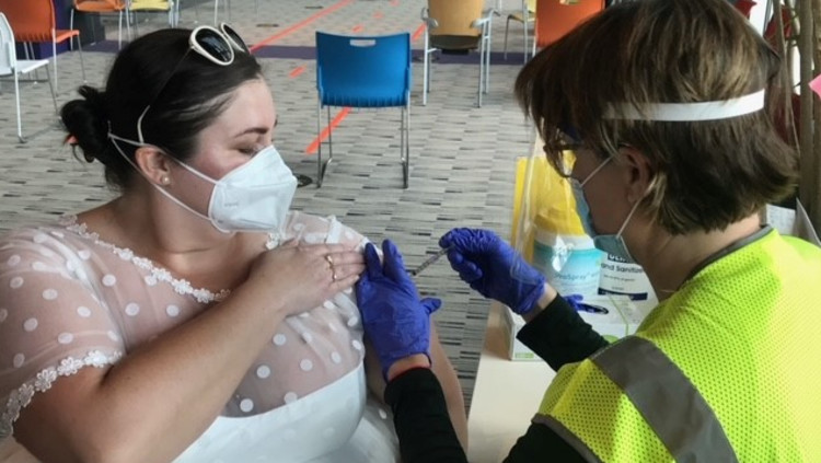 אחרי שהחתונה בוטלה פעמיים: אישה חגגה את החיסון לקורונה בשמלת כלה