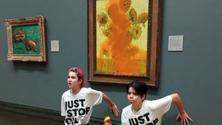 מפגינות מחאת האקלים השליכו מרק עגבניות על הציור המפורסם של ואן גוך | צפו