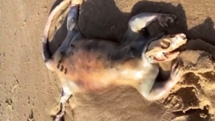 "מפלצת" מסתורית נשטפה אל חוף הים והטילה אימה על הרוחצים