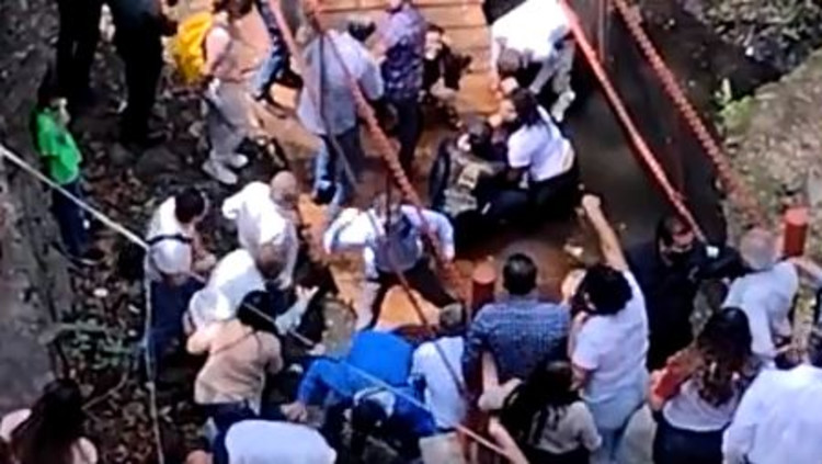 לעיני ראש העיר: גשר להולכי רגל קרס במהלך טקס הפתיחה | צפו