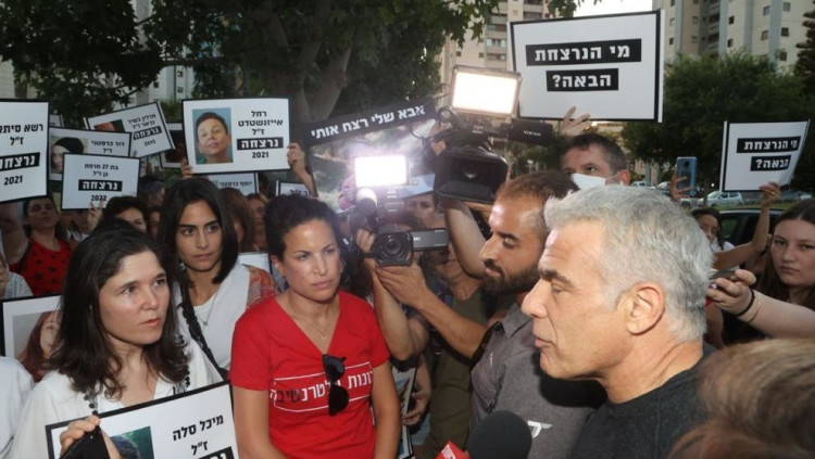 עשרות הפגינו נגד אלימות כלפי נשים מול ביתו של רה"מ החליפי; לפיד: "זה עליי"