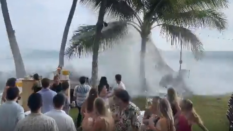 גלי הענק הרסו את החתונה ושטפו את האורחים | צפו בתיעוד המצמרר