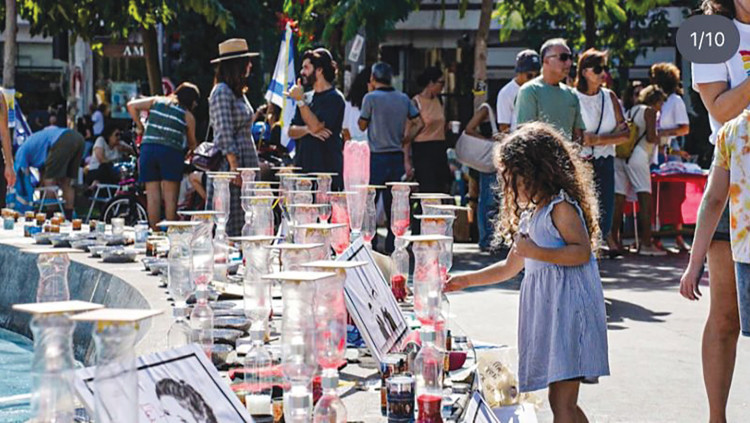 מאות ילדים השתתפו בפעילות הכנת שעוני חול שפוזרו בכיכר דיזינגוף בתקווה להחזרת החטופים