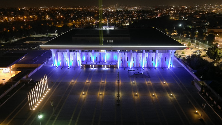 למען החטופים: אלומת האור במשכן הכנסת האירה את שמי ירושלים