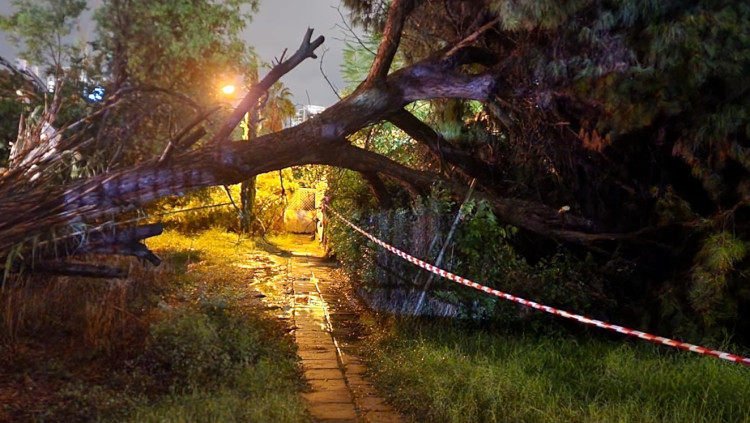 נזקי הסופה בפתח תקווה: פתחי ניקוז נחסמו, עץ אורן עתיק קרס