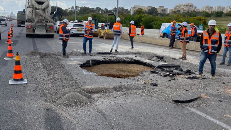 אספלט שקע באיילון דרום, מספר נתיבים נחסמו לתנועה | צפו בתיעוד
