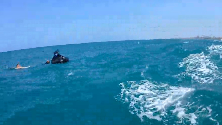 רוכב אופנוע ים חולץ לאחר שנסחף לעבר שובר גלים | צפו בתיעוד