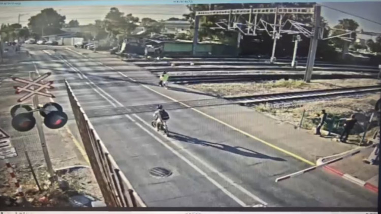 תיעוד דרמטי: רוכבי אופניים התפרצו למסילת הרכבת וניצלו ברגע האחרון | צפו
