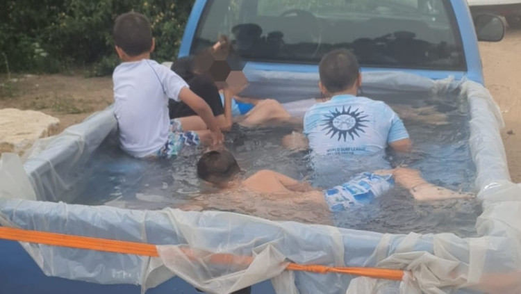 כמה חם היה בסופ"ש? בריכה מאולתרת אותרה בתא מטען של טנדר נוסע
