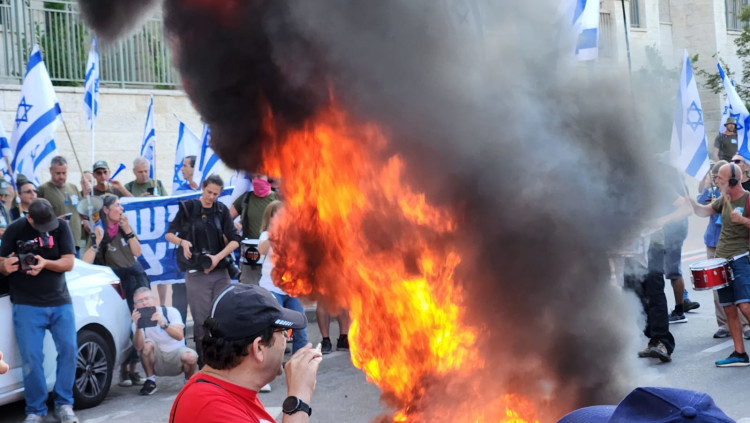 העמידו גדרות תיל והציתו צמיגים: עצורים במחאה מול בית השר לוין