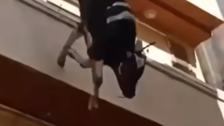 רק רצה לחיות: שור שהיה מיועד לשחיטה קפץ מהקומה הרביעית | צפו
