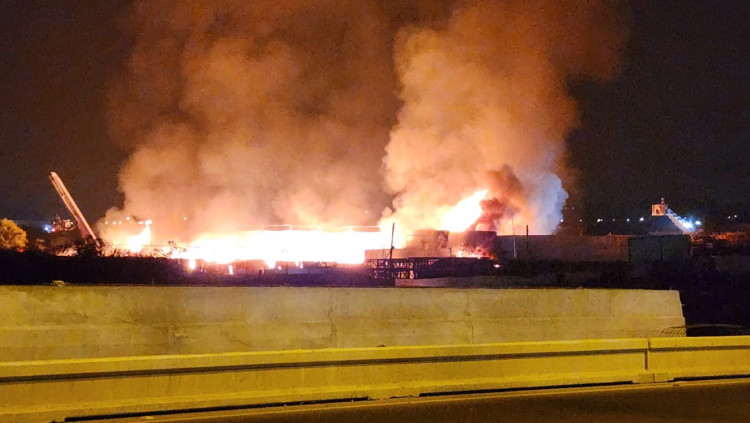 שריפת ענק בצומת ירקונים בפ"ת: צוותי כיבוי רבים פועלים במקום