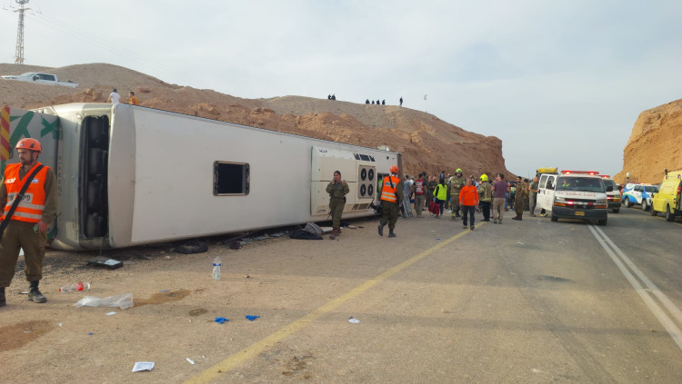 16 פצועים בינוני וקל בהתהפכות אוטובוס בכביש 90