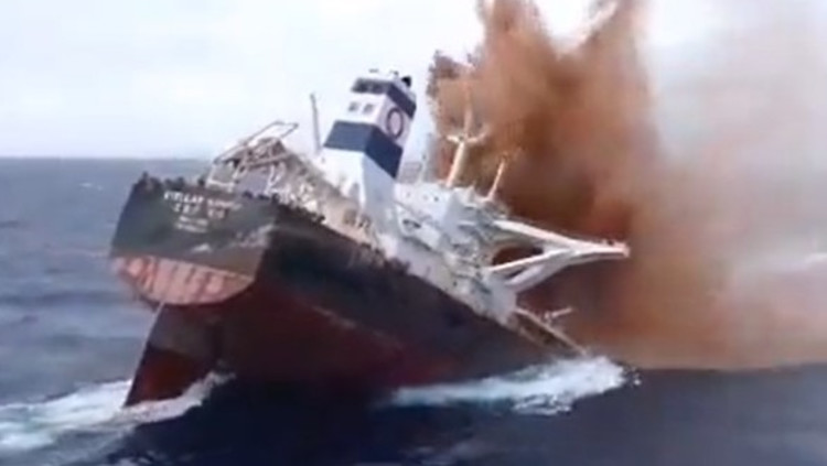 תיעוד מטריד מהים האדום: האם החות'ים הטביעו ספינה בריטית? | צפו