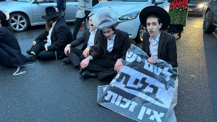 "לכלא ולא לצבא": מאות חרדים חסמו כבישים בירושלים במחאה נגד חוק הגיוס