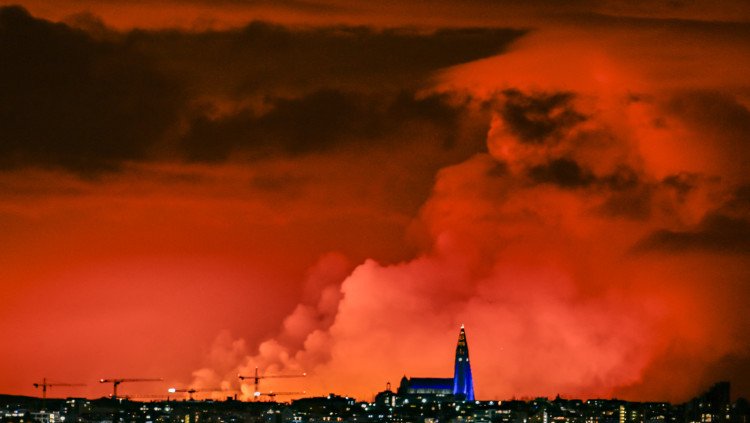 לא מהעולם הזה: הר הגעש התפרץ באיסלנד - וצבע את השמים באדום | צפו בתיעוד