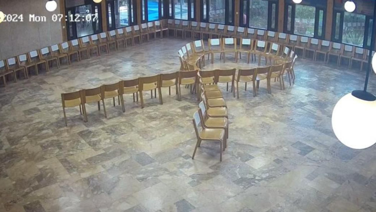רציניים לגמרי באחד באפריל: הנוער בקיבוץ חצרים ״השתלט״ על חדר האוכל במיצג להשבת החטופים