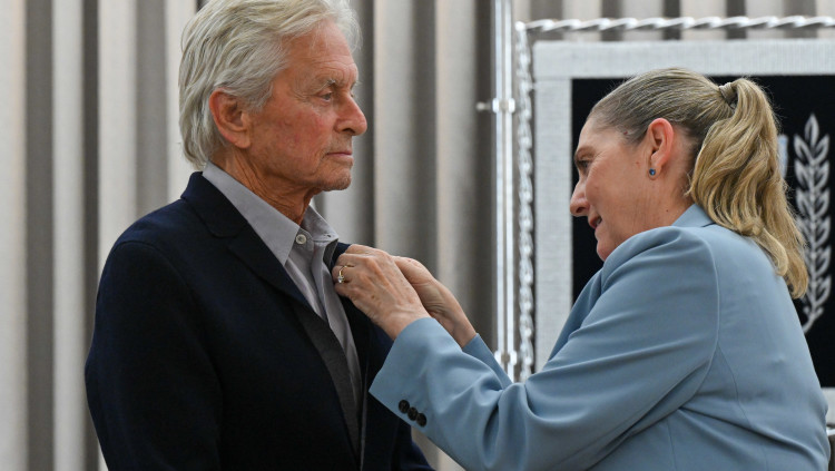 הנשיא מאוהב: מייקל דאגלס עונד את סיכת החטופים ושולח מסר לעולם