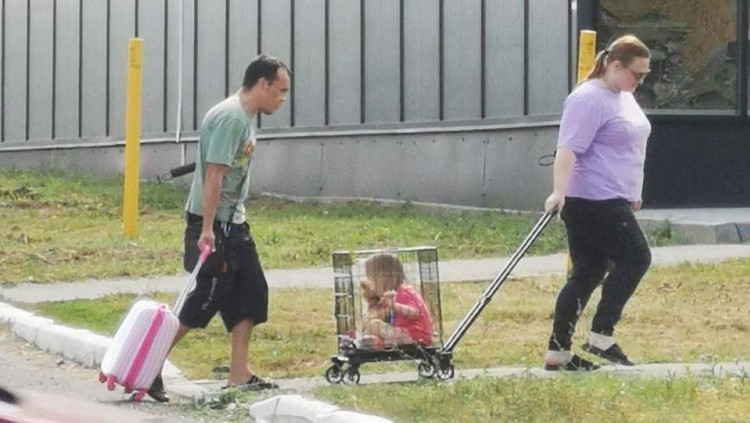 תיעוד מטריד: פעוטה נגררת בכלוב ברחובות על ידי זוג מבוגרים | צפו