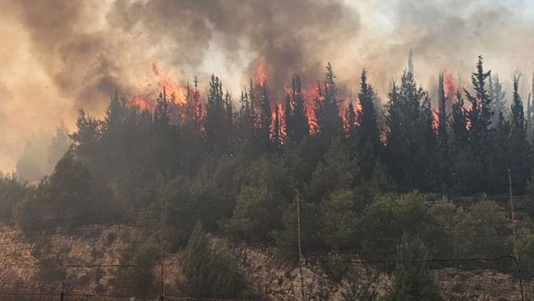 חשד להצתה: שריפת ענק פרצה בהרי ירושלים | צפו בתיעוד