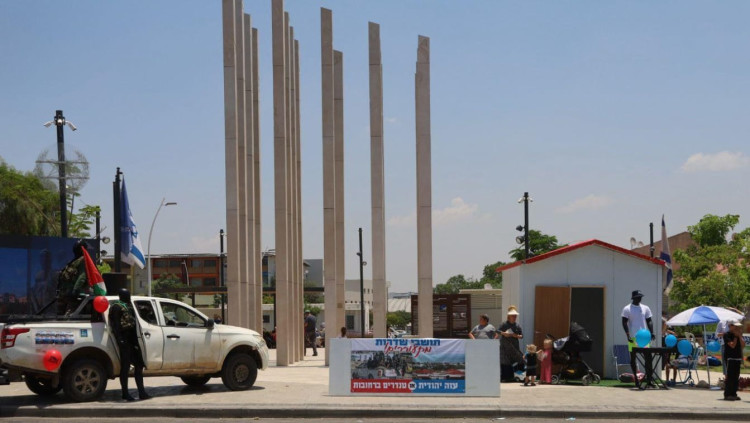 ברקע עסקת חטופים: בשדרות הוצב מיצג של מחבלי נוח'בה על טנדרים